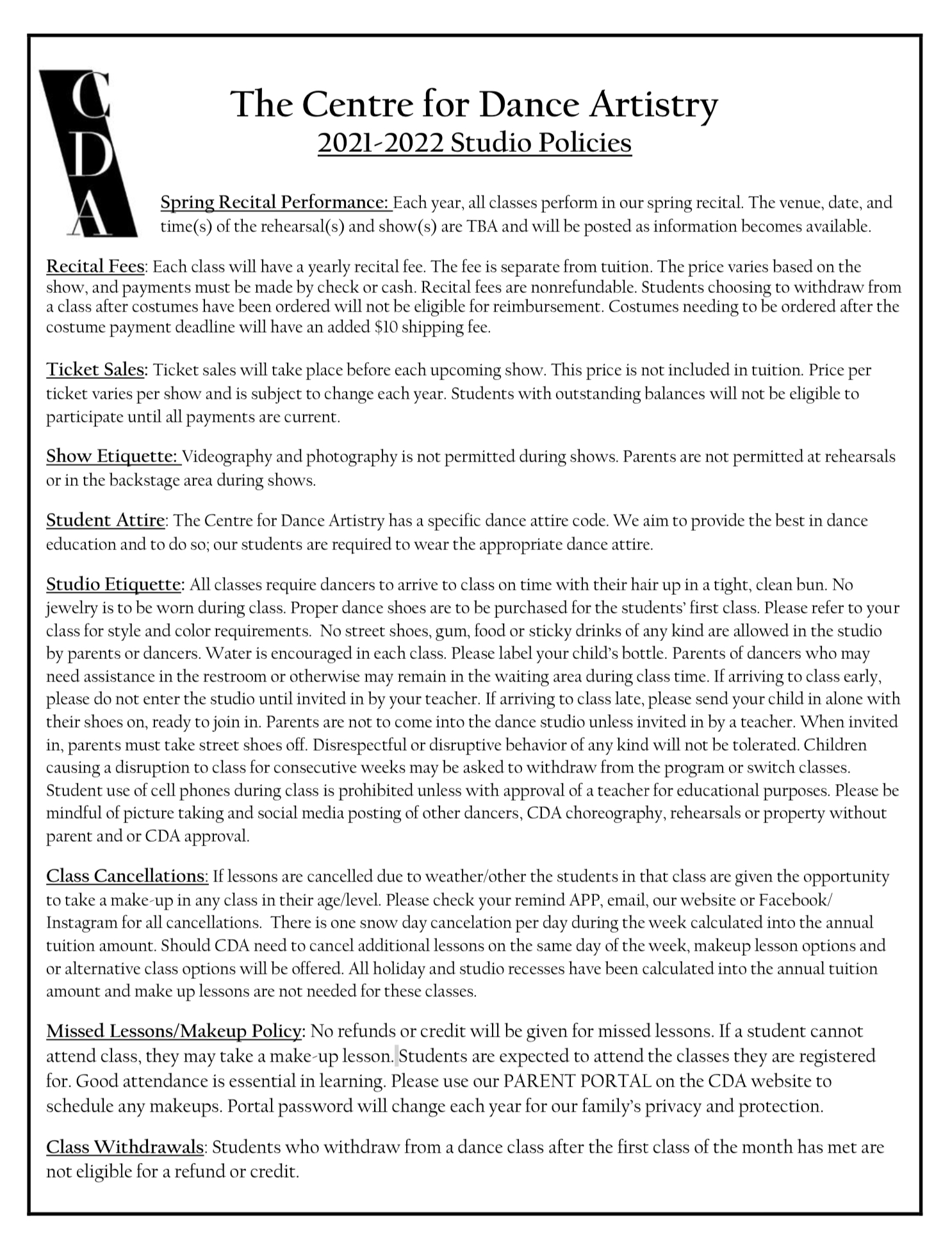 Studio Policies